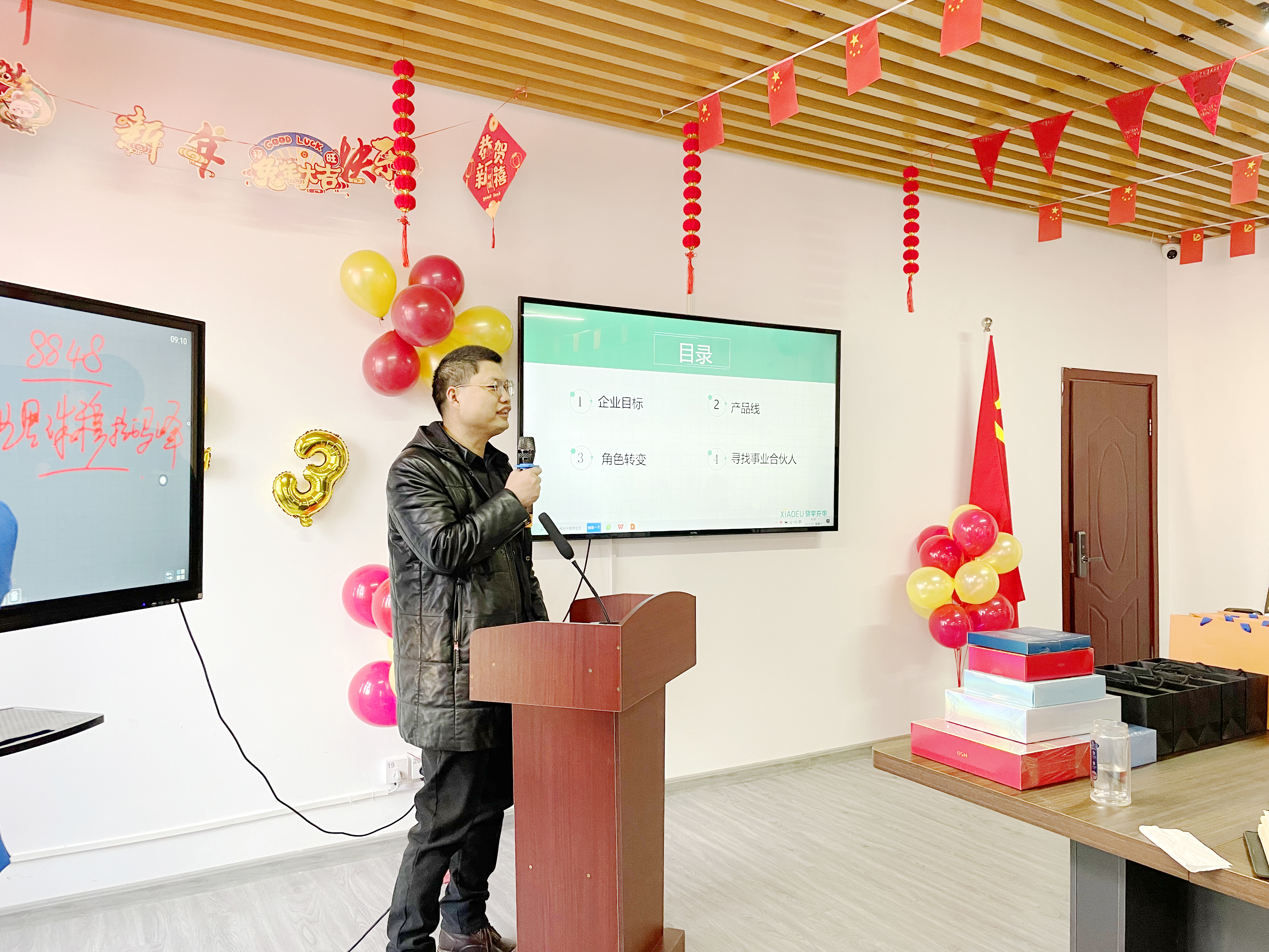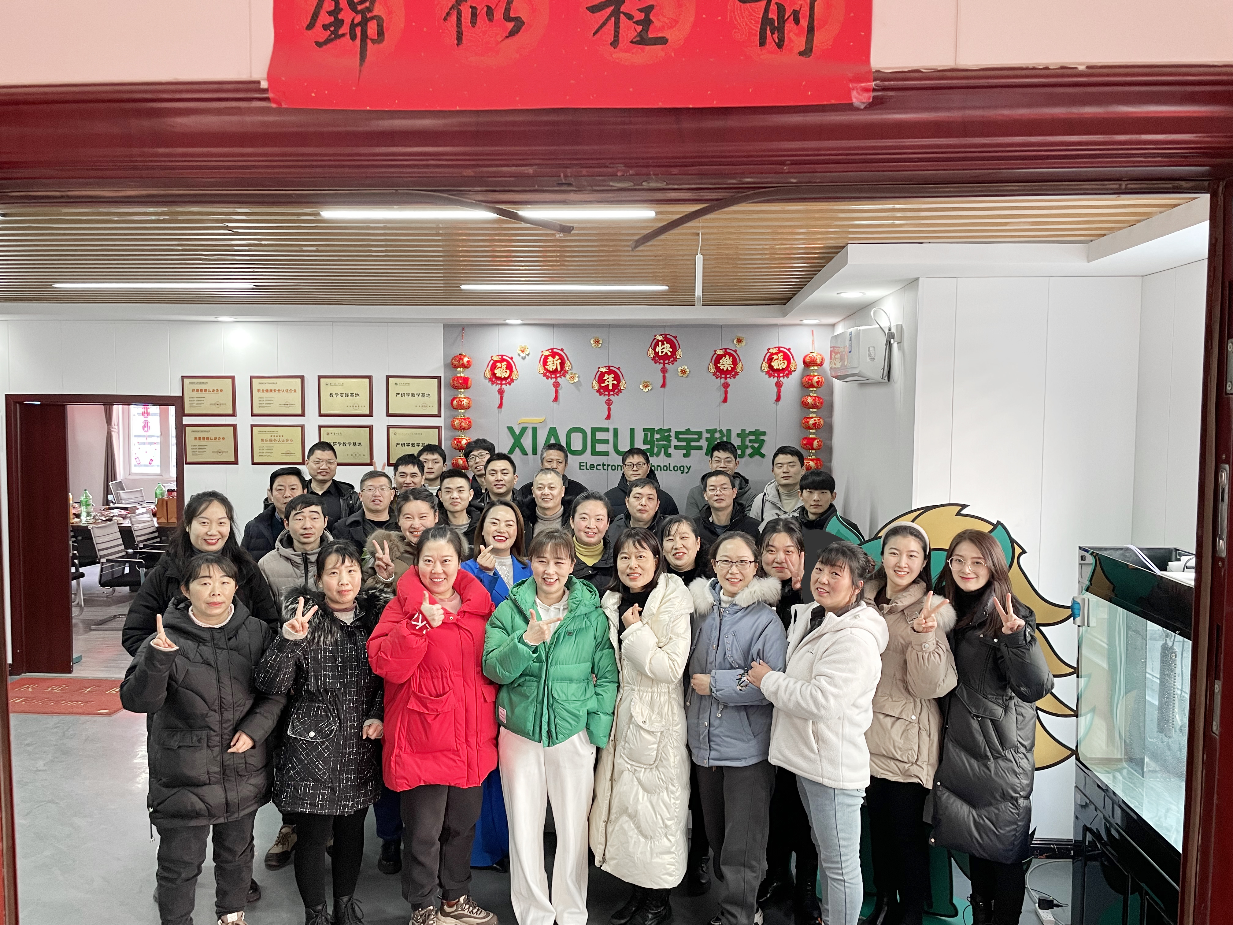 2023年1月7日,河南骁宇电子科技有限公司年会在郑州市高新区西区标准厂房隆重召开。董事长翟连伟、总经理王彦茹与骁宇电子科技40余名同仁一道,总结今年收获,展望来年希冀。