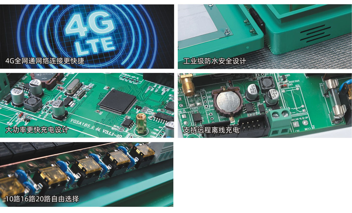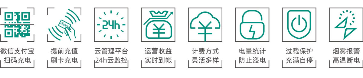该系列产品是骁宇经典款,分为10路、20路两种,采用物联网架构设计,通过4G、WIFI、WLAN与云平台互联的智能充电站。用户可使用微信或支付宝进行在线充值、扫码充电,充电过程实时监测,充电消费记录可随时查询。运营商拥有在线管理云电站、查询收益报表、检测电站状态等各种智能管理权限。